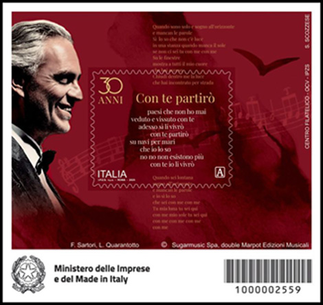 | Italy | 23/10/2025 - Excellencies of the Italian cultural heritage : song "Con te partirò" - 30th anniversary |